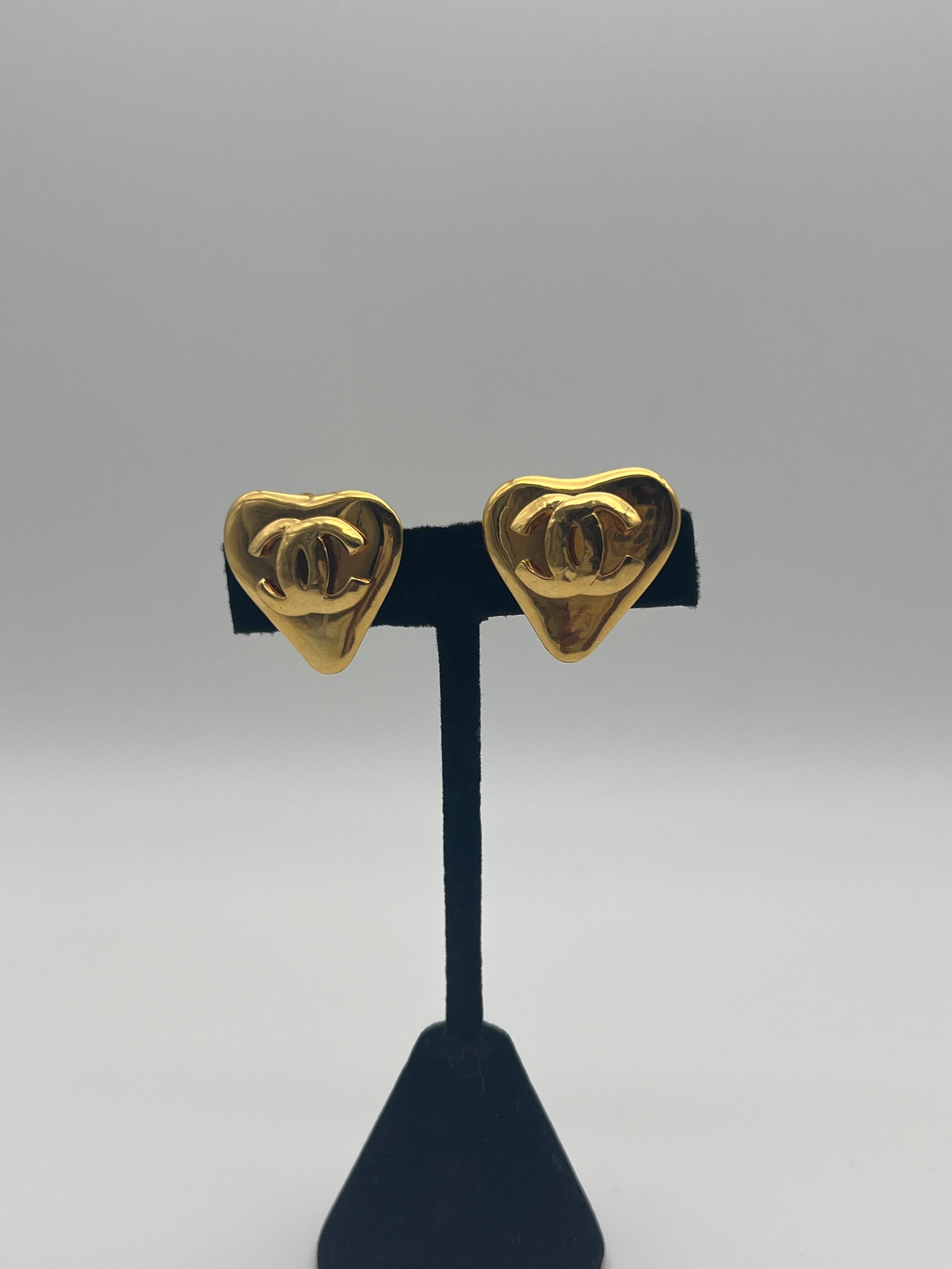Timeless and chic, these authentic Chanel gold-tone heart earrings feature the iconic interlocking CC logo in a sculpted design. A standout vintage piece that captures classic Chanel elegance and Parisian charm.